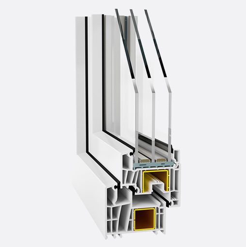 - System 7-komorowy o szerokości zabudowy 81 mm z trzecią uszczelką środkową